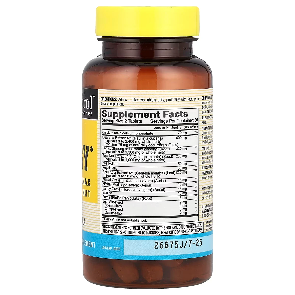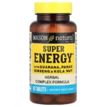 Super Energy – Guarana, Panax Ginseng & Noix de Kola (60 Comprimés) – Mason Natural